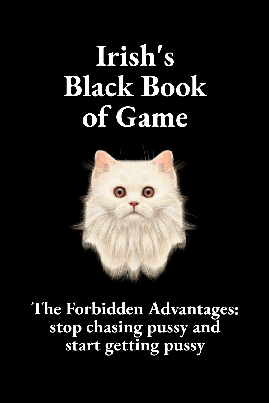 It's my mission to help make the world a less lonely place and to get guys find love and be smart. And, that means helping guys get laid. So I wrote a short book called "Irish's Black Book of Game" where I'm including all the things I've observed and responded to.